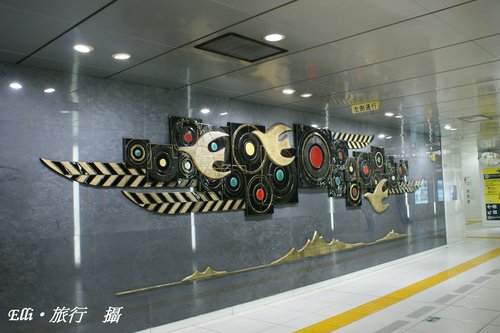 從築地市場往台場要在汐留換車,果然是東京都營地鐵,連通道壁面都這麼精彩。繼前一篇在築地市場駅拍到的2幅浮世繪後,上圖這幅藝術品如果沒記錯的話應該是在汐留駅拍到的。從「大江戸線」換「ゆりかもめ (百合海鷗號)臨海線」準備前往「お台場海浜公園駅」時,在經過的通道上。